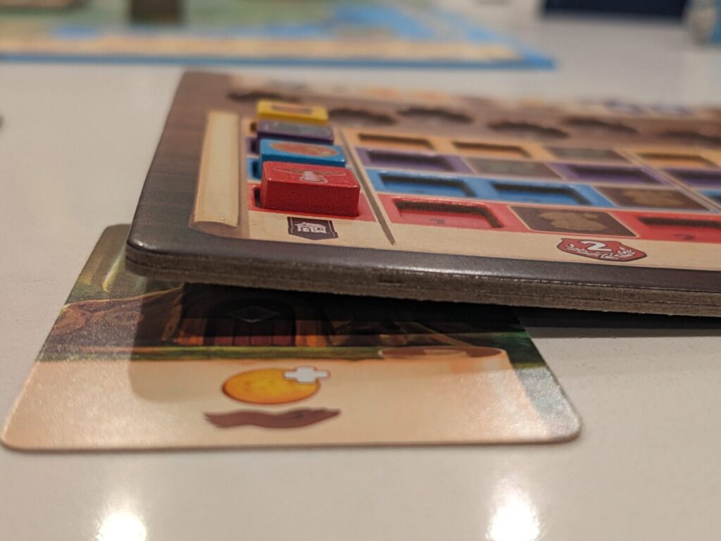 Kingdom Crossing’s only physical failing is the included player boards. After just half of my first three-player game, the boards were so warped that I didn’t even have to lift the player boards to slot cards at either end. Mixed with the tiny resource tracker tokens, Kingdom Crossing made me—a spoiled brat now accustomed to the kinds of triple-layered player boards standard in a well-produced Euro from publishers like Mindclash and Eagle-Gryphon—yearn for boards that value the feel of a luxury good.