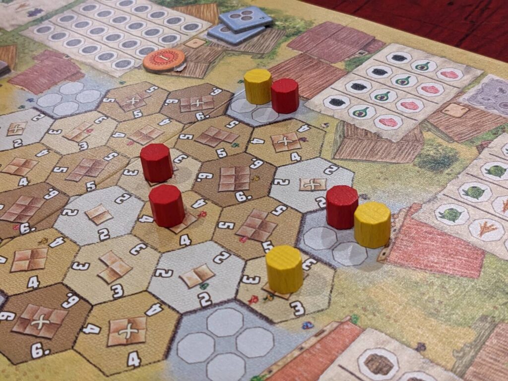 That means that the writing team needs different reasons to get new games to the table. What better way to attack that idea than to consider the games that players rate so highly? A number of us are going through our old collections to write about the games we haven’t already covered, so I took some time to get La Granja (2014, Spielworxx / Stronghold Games) to the table for a few plays both “IRL” (in real life) and on Board Game Arena, where an implementation has lived for almost five years.
