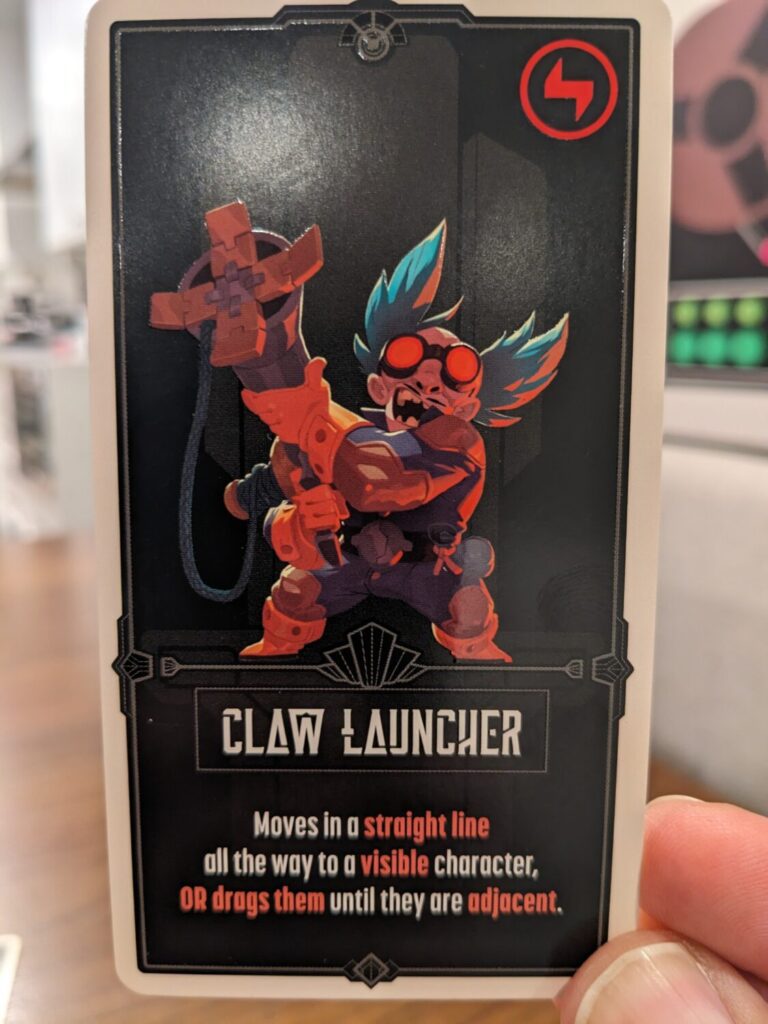On a night when I taught my family how to play a silly family game called Push Push Penguin (a teach that took maybe five minutes), I taught Leaders to my wife in maybe two. Players can activate any number of their characters to take actions before recruiting one of the three cards in a small market at the end of each turn, adding new characters to the back line of a player’s side of the board. When a player has drafted their fifth character (really, their fourth, since one of their characters is their leader card), that’s the end of adding new characters to a player’s portfolio.