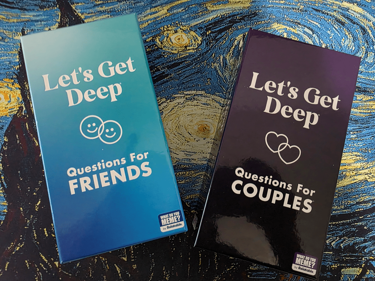 So, in my opinion, this is not so much a game as it is an activity. It is a fun little activity, sure, but to call it a game is to kind of miss the point. That said, the good folks over at Relatable do call this a game. Depending upon the card set you purchase, this is a Family Game (Let’s Go Deep: Family Edition), a Relationship Game (Let’s Go Deep: Couples), or a party game (Let’s Go Deep: Friends). If they are going to call it a game, I will go along. In that regard, let’s think of this as a cooperative game (i.e., one with no distinct winner). Even so, these products may or may not fit the definition of a game for BoardGameGeek. As a structured activity, they are at least edge cases.