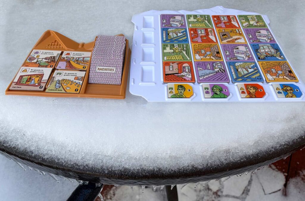 We lamented the fact that we couldn’t use our refresh token to clear out guest tokens and amenity tiles. In two different games, we had amenity tiles that simply couldn’t be picked because there weren’t enough colors of tiles, or we didn’t have time to finish them, etc. And the same with the guest tokens. If, at the beginning of the game there are four 3rd and 4th floor guests, there’s nothing you can do about it but wait. That makes the game take longer and adds a bit of frustration to what is otherwise a very pleasant experience.
