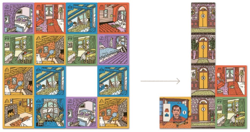 - You must have one unoccupied and adjacent room of each color shown on the guest token. If your token shows red and blue icons, then you must have an empty red and blue room right next to each other (not diagonally).