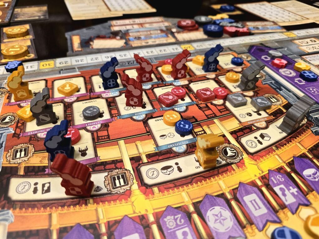Going last hurts, but the only way to move up is to take the balcony action, which claims achievements or grants money. It feels rough in a game where you start with only three workers (two more unlock in later rounds). It’s an interesting sensation when you use the current round solely to set up for a better next one.