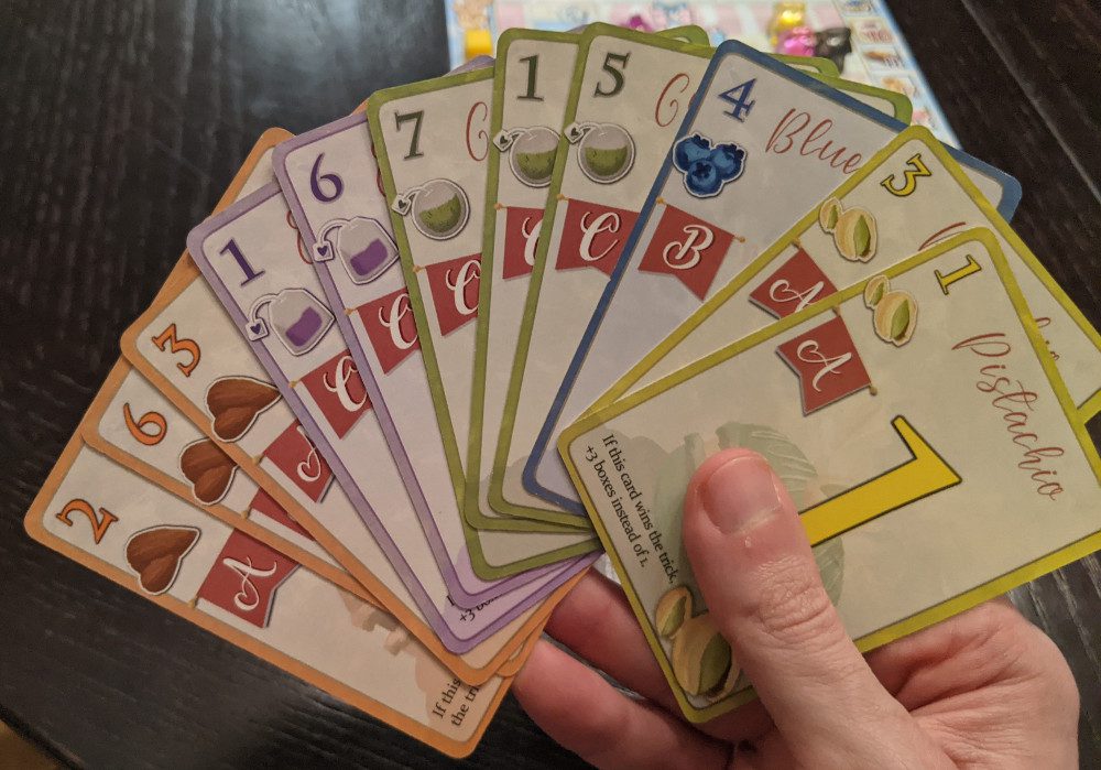 There is far more headbutting here than most trick-taking games, yet it isn’t so chaotic where strategic and tactical play don’t play a part. It’s also one of the few games allowing you to express your personality through its mechanisms. Once you intentionally shred a suit or two from your hand, a basket of opportunities opens and allows you to play your Allergen or Trump cards to mess with everyone’s expectations and strategies. It’s a nice little touch that I find missing in most modern trick-taking games.