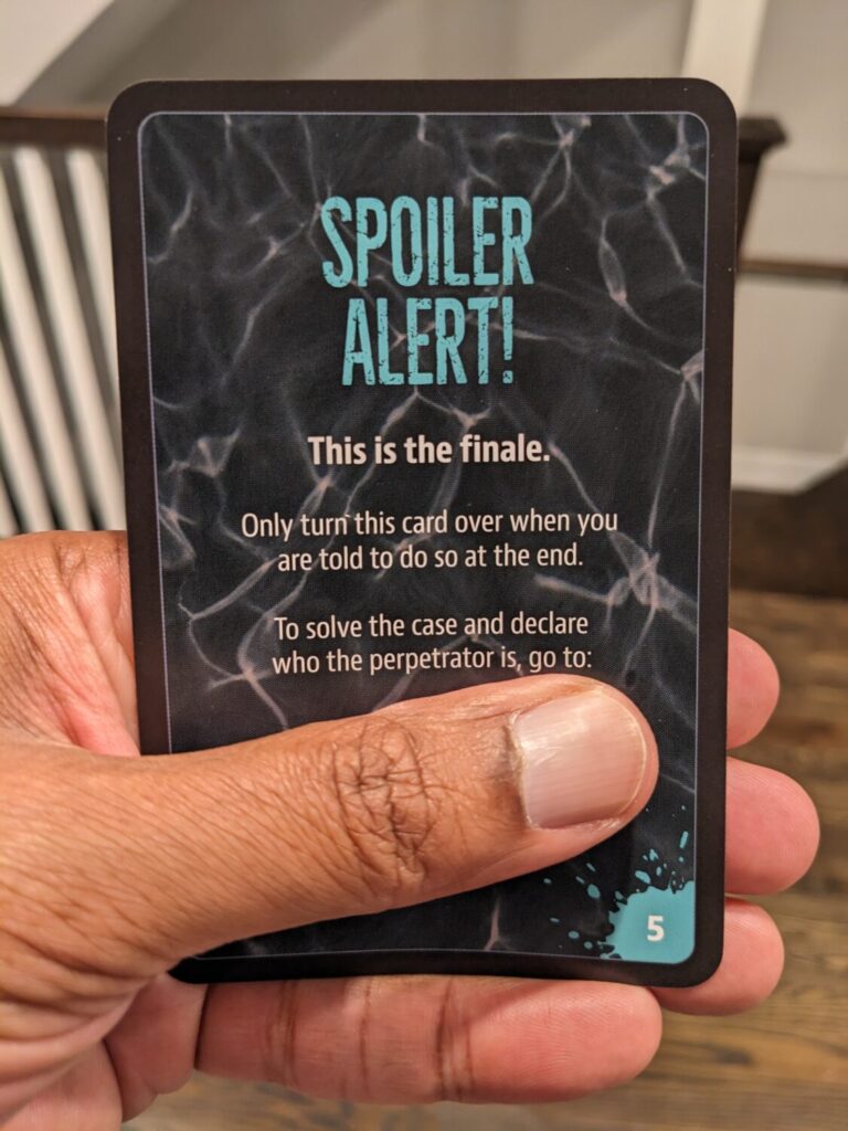 “This might be the cleanest of the mystery games we have ever tried,” my wife said as we were close to wrapping up the case. I had to agree. It certainly helps to play a lot of games, but everything made sense to us because we were thorough in running through the cards. There were high fives when we used deduction to figure out a piece of the final solution. Despite the high volume of red herrings, we were able to sort things out by following the crumbs left all over the island.
