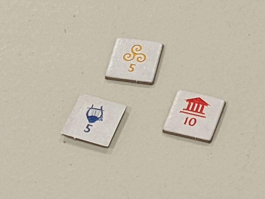 One of the challenges with Mega Empires has been addressed with fans who have built spreadsheets that can be used to math out the discounts earned after purchasing Civilization Advance cards. For my two review plays, we did a mix—using a Google Sheets file built by one of the players to run one game, then using the game’s included chits to track discounts for my second game. Big edge to the Google Sheets file; players can run off to their laptop or phone and use better tools to ensure that they are spending the right amount of coin (or treasury tokens in a pinch), saving a lot of time in the process. I can’t imagine playing a full game without the Google file now that I’ve seen it.
