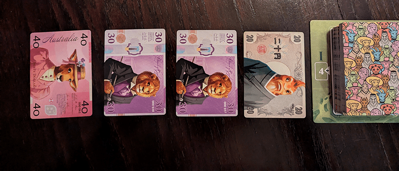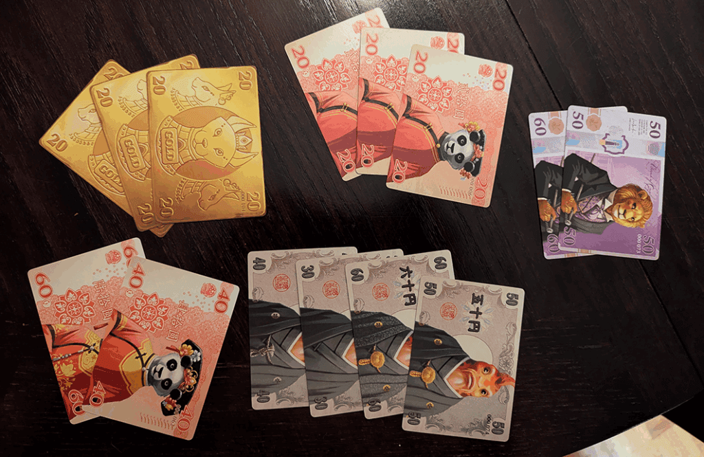 Everything comes down to gaining majorities in specific currencies and keeping an eye on what your opponents are collecting. In a strange way, it almost feels like an area control game, just without the areas or a board. You are fighting for space in the currencies themselves, and every swap, bid, and pickup shifts the balance.
