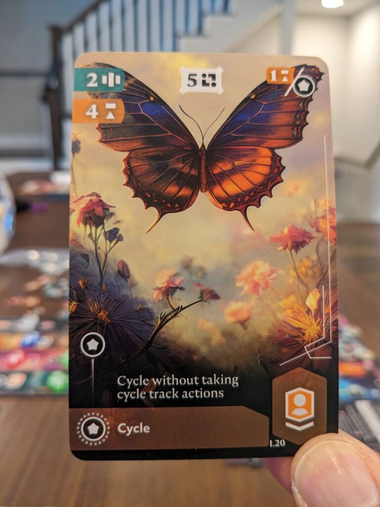 And most of the cards ended up being a spin on something else out there. One player’s Lucid bonus might be two Knowledge, two Memory, and two object tokens. Another’s might be three Knowledge, one Fantasy (yes, this is a resource), and two objects. But none of the cards on their own feels broken or game-breaking, which I think would have created more “wow” moments during play.
