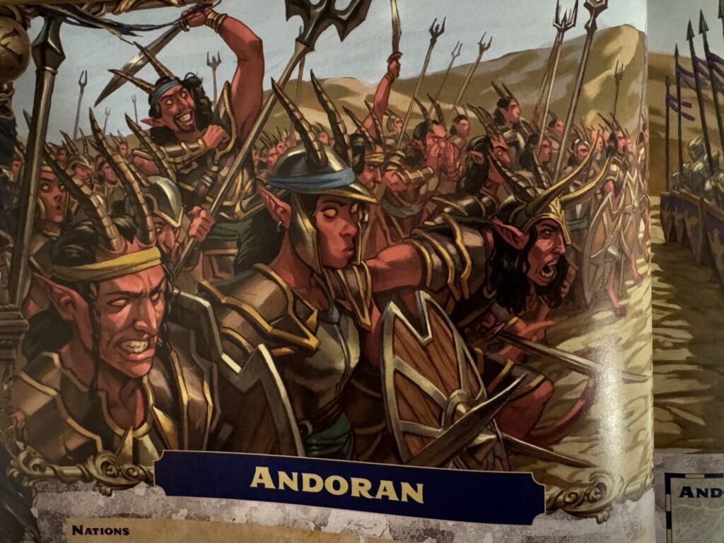 When throwing around the term ‘high fantasy’, the first things that spring to mind for me are works of fiction like Game of Thrones and The Lord of the Rings. Literature laced with political intrigue, knights on horseback, and a world wreathed in magic. The world of Pathfinder Second Edition, Golarion, puts the tropes and themes of high fantasy literature on full display. From the broken land of rebellion, Galt, to the revered dwarves in the Five Kings Mountains, there are plenty of plots sure to satiate any hungry Gamemaster. Is this lore-driven book destined for your shelf? Let’s take a look.