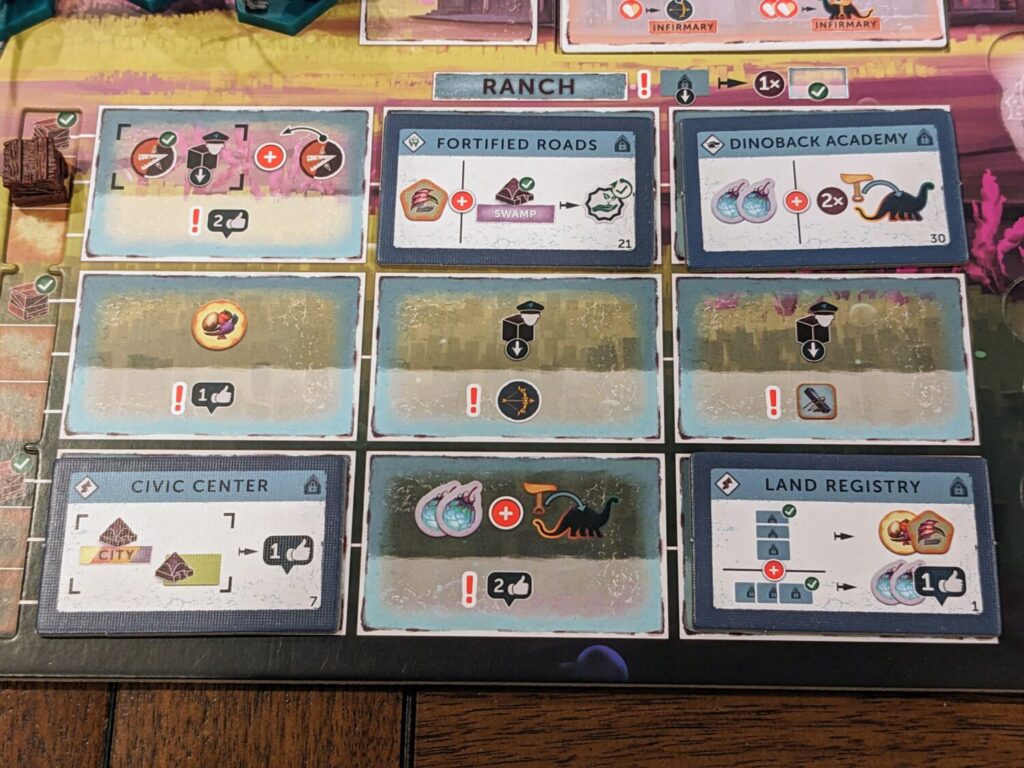 The city/zone/dice drafting elements of the Perseverance games just aren’t as interesting as the exploration portions of the game. On my second play, I focused very intently on two focus areas: the Ranch, and the Wilderness.