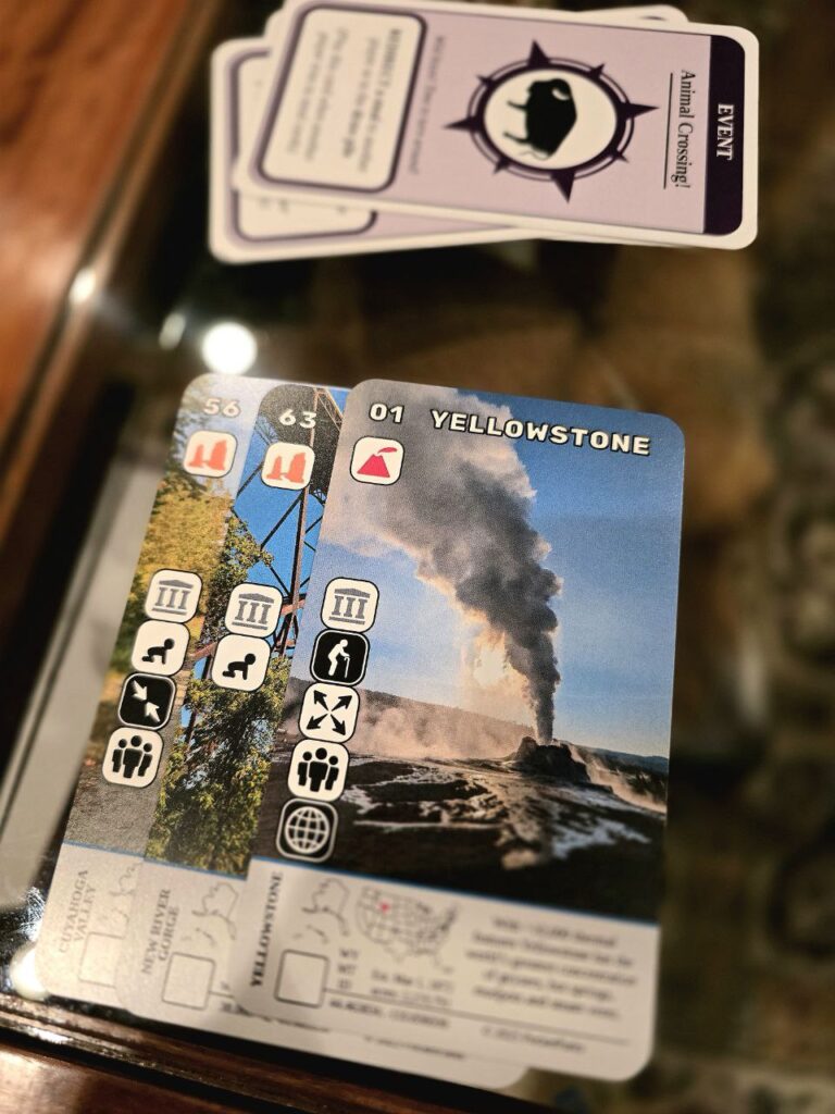 Overall, this game is a brisk, refreshing hike through some of the country’s most gorgeous scenery—it makes me want to lace up my boots and start exploring. Many times during my plays, people asked, “Did they really take this photo?” All the cards feature absolutely stunning shots that make you pause and imagine yourself among the trees. The gameplay is smooth and snappy. Instead of burying yourself in the set collection element, you’re always watching your opponents—tracking their discards and timing, wondering if they’re about to strike or if you’ll get the chance first.