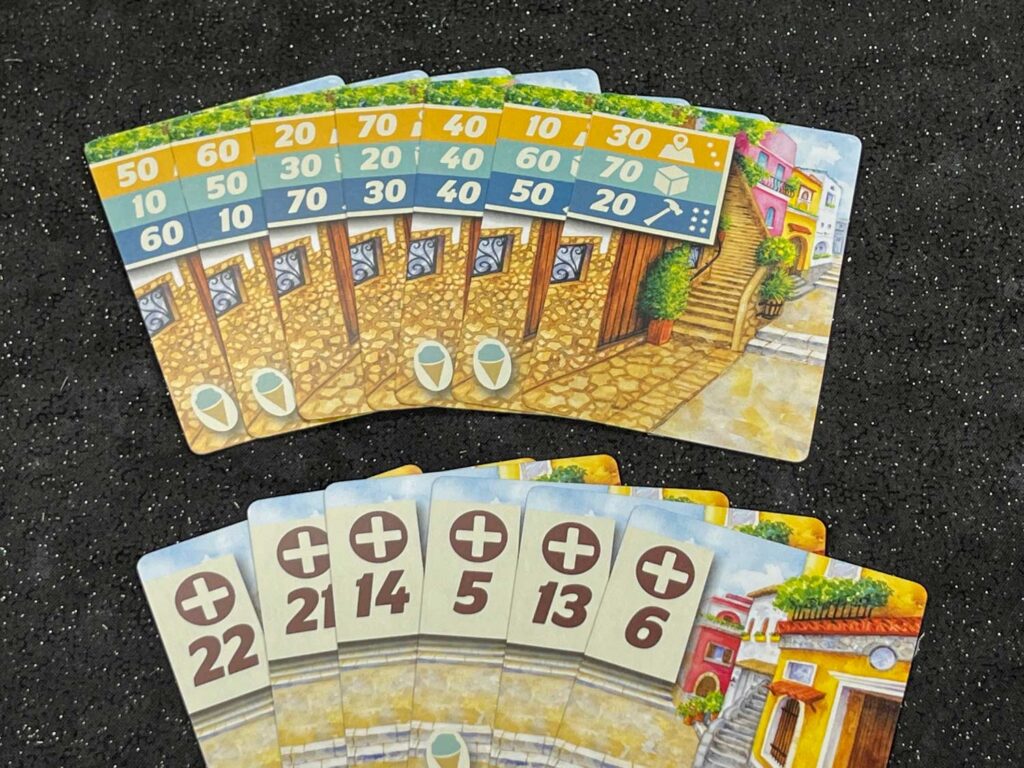 In Positano (the game), players attempt to earn the most points through clever card play and outguessing your opponents. Your task, dear friend, is to construct villas on Positano’s (the village) cliffs such that the residents have beautiful views of the sea. Your opponents are unfortunately trying to do the very same thing and will stoop at nothing to prevent your homes from achieving those views.