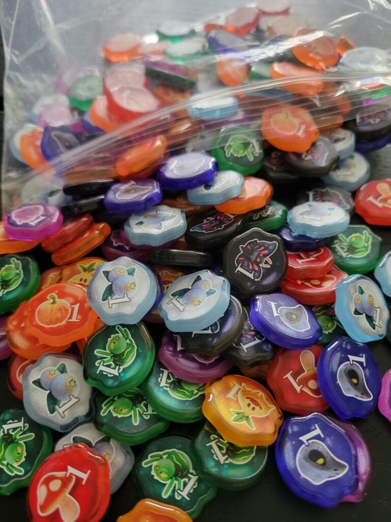 The All-In edition of the game also includes the expansions for the original game (The Herb Witches and The Alchemists) in one handy box, which is fine. I think both are decent additions, though the addition of both make the game significantly more cerebral than the base game’s relatively simple “How much hubris am I feeling today” calculation. The Herb Witches adds witches with special powers that you can spend “witch pennies” on to get special boons once per game as well as a new type of ingredient that has variable value depending on which randomizer you use for it during setup.