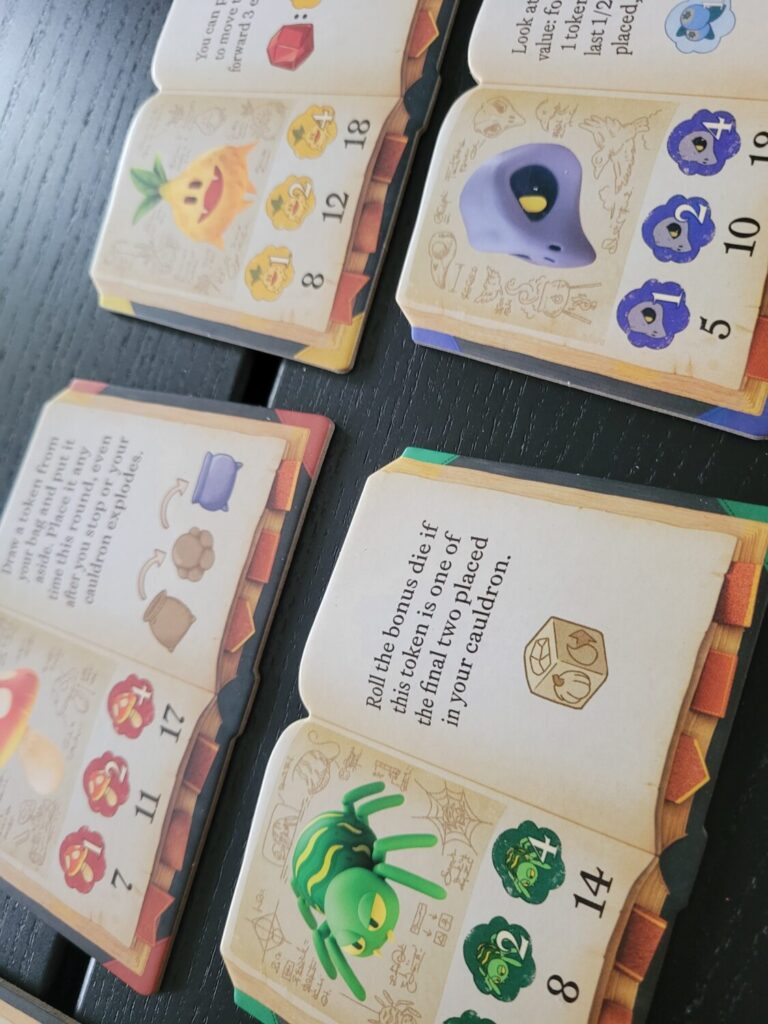 Everyone is drawing tokens simultaneously, and you stop when you feel you’ve done well enough—which I almost never do, because it’s way more fun to explode your potion.