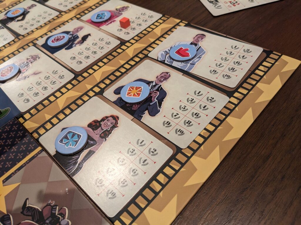 Solving this would be easy, so I recommend a house rule: playing four rounds in a two- or four-player game, or playing six rounds in a three-player game. That way, going last is handed out in equal parts and no one will use that as an excuse when they get hosed by their opponents. This would require some light juggling with the distribution of celebrities and awards, but that’s a risk I’m willing to take.