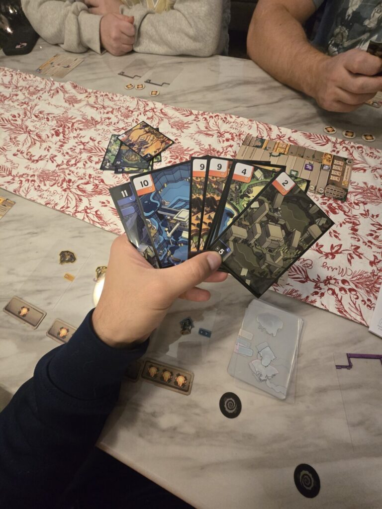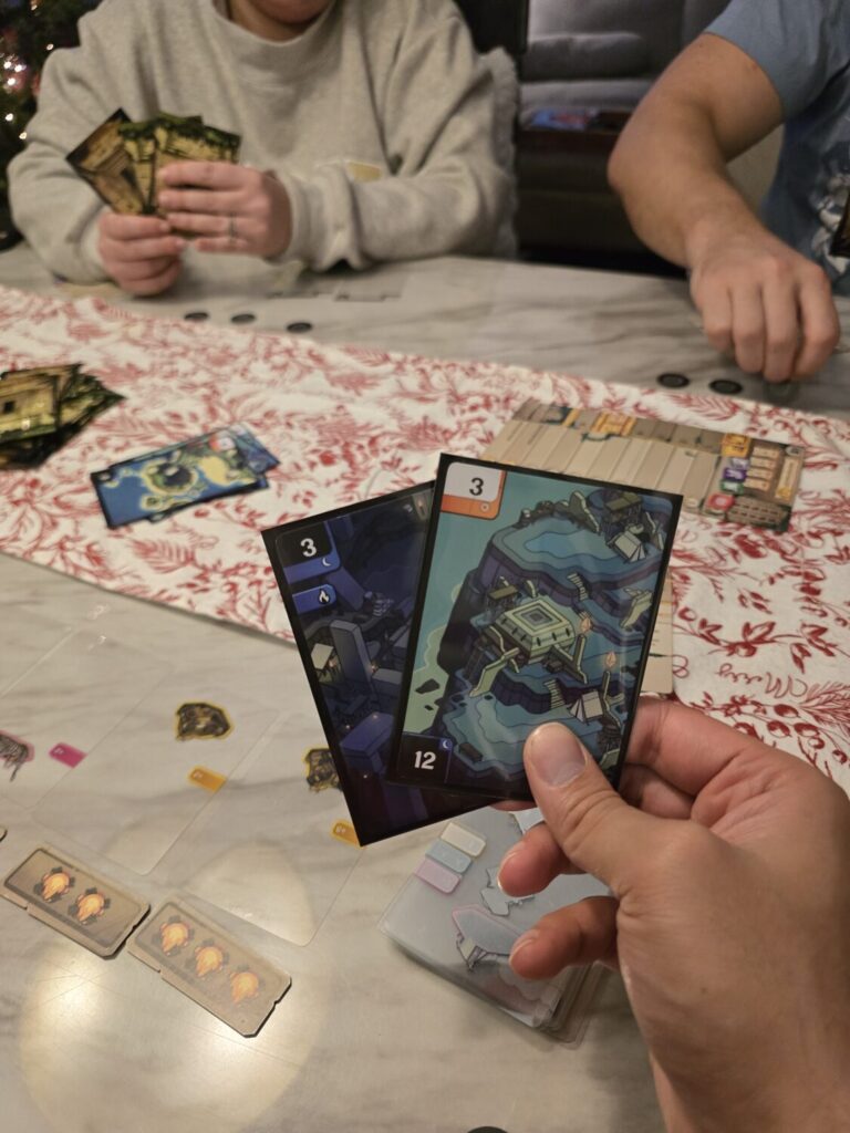 And… It’s fine. My first play was a 2‑player game with my wife, and it was god‑awful. In a two‑player setup, the card distribution is so swingy that the better-dealt hand almost always wins. We tried again at higher player counts, and while the experience improved a bit, it still never really lifted off.