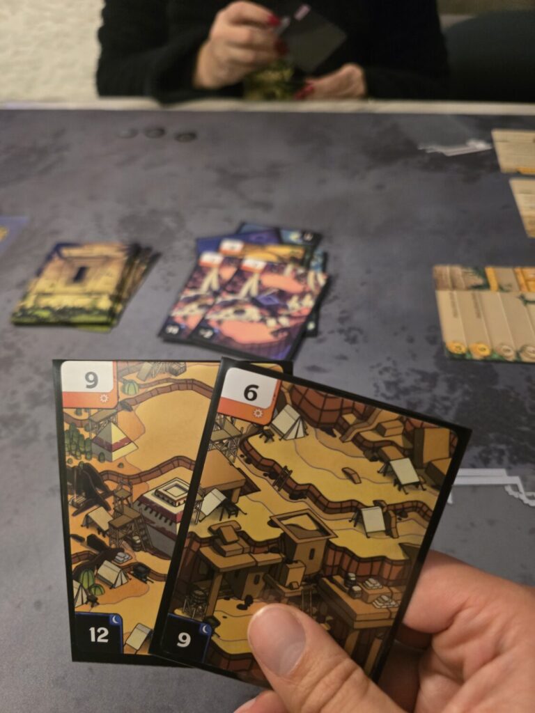 Players also flip one base card to its alternate side at the start of each round (a slightly stronger side), but it doesn’t meaningfully add to the fun. The card upgrading ends up feeling more like a gimmick than a strategy.