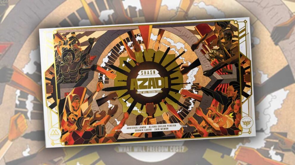 In a four-player game, players need to collectively gain enough Azadi across 6 rounds (a resource on a track) to throw off the yoke of the Imperials. The moment that happens, the game immediately switches to competitive mode, with a few additions. But, if they don’t manage to gain enough Azadi after 6 rounds, everyone loses.