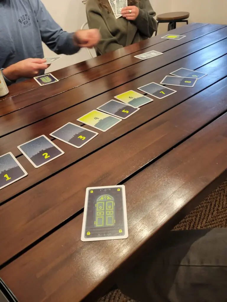 The receiver will then have three cards, and they’ll select a new victim to pass cards to, but only ones who haven’t been passed to this round (that’s what the door cards are for).