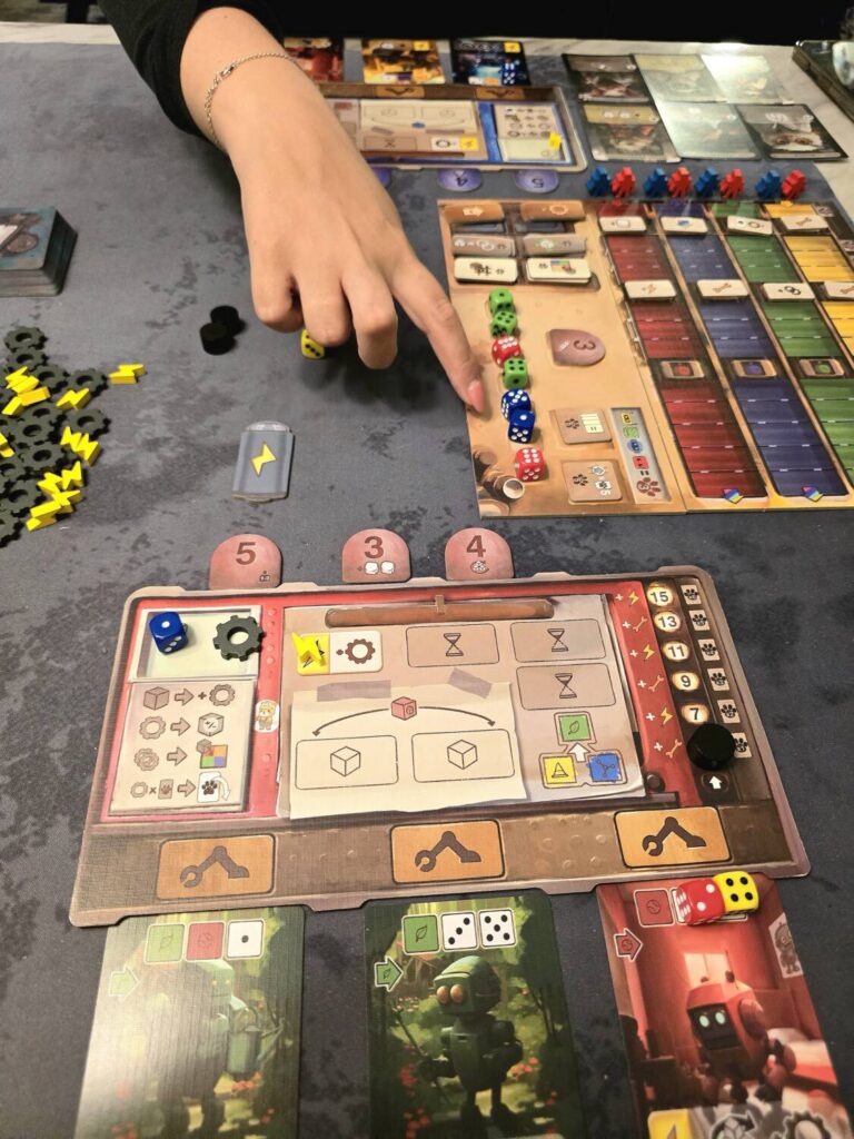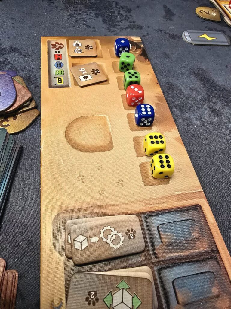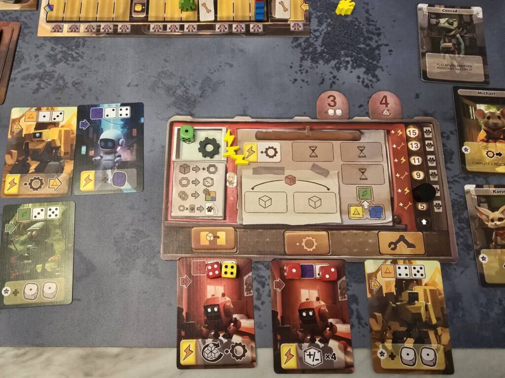 The game has a similar decision chain DNA as Grand Austria Hotel: If I draft this die and put it here, it completes this, which gives me that, which lets me do this… If I’m only doing one or two things on a turn, I’ve wasted it. The robot factory is always busy, and idle hands will fall behind!