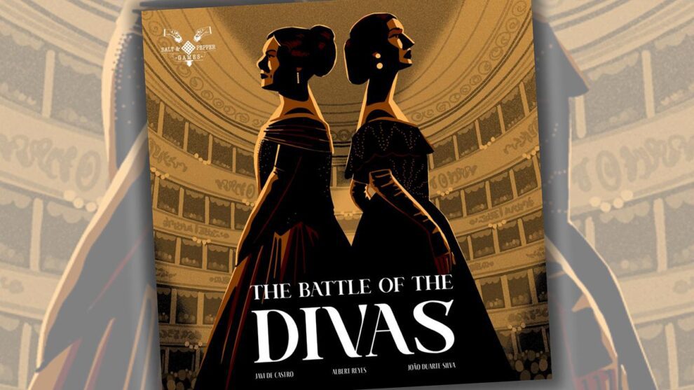 The Battle of the Divas is the second game in publisher Salt & Pepper’s Battles without Bullets line, a collection of two-player games that tie traditional card-driven game (CDG) mechanics to atypical settings. The first game in this series was the masterful The Battle of Versailles, which took place during a fashion show that changed modern fashion. The Battle of the Divas, from designer Albert Reyes, details the decades of rivalry between Callas and Tebaldi, as they vie to outperform one another in productions of beloved repertoire.