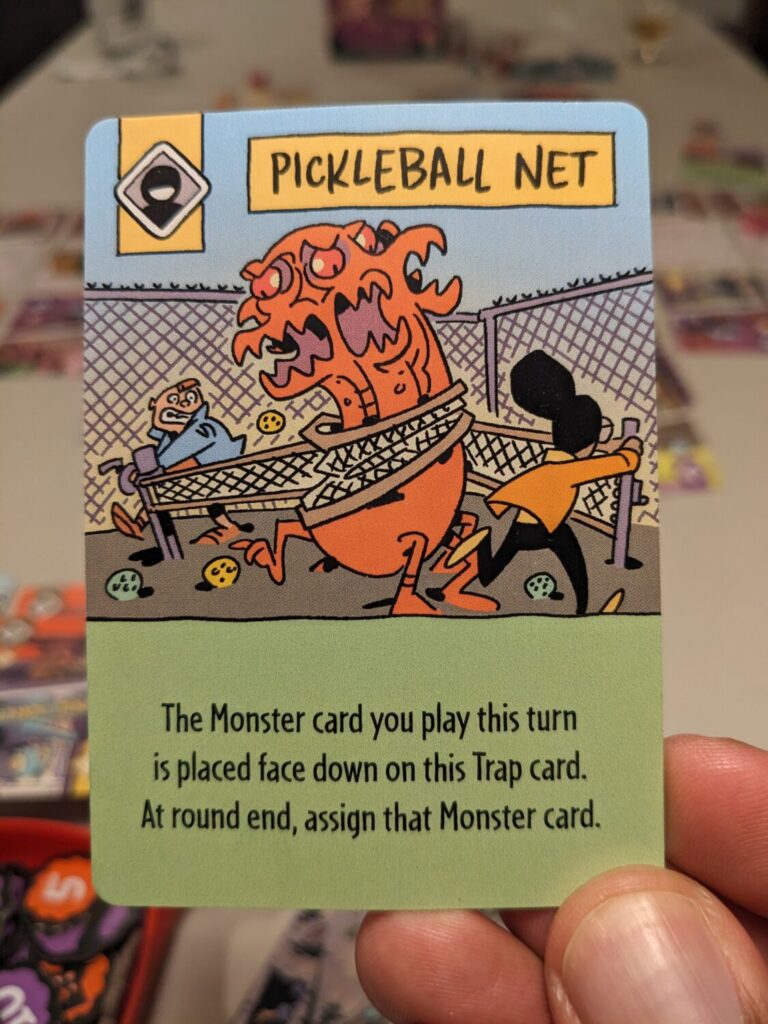 Then, it doubles the number of rounds. If I told you that the Family Game was one round and the Full Game was two, that doesn’t really sound like much, right? Whoa, Nelly. At even two rounds, The Creeps runs a bit too long, and I didn’t even try the game at five players. The system doesn’t do itself any favors with the Trap card system, because it usually slowed rounds down a bit as column traffic shifted or different columns became unplayable (some Trap cards kill off the ability to add more cards) or players took more time to analyze their moves.