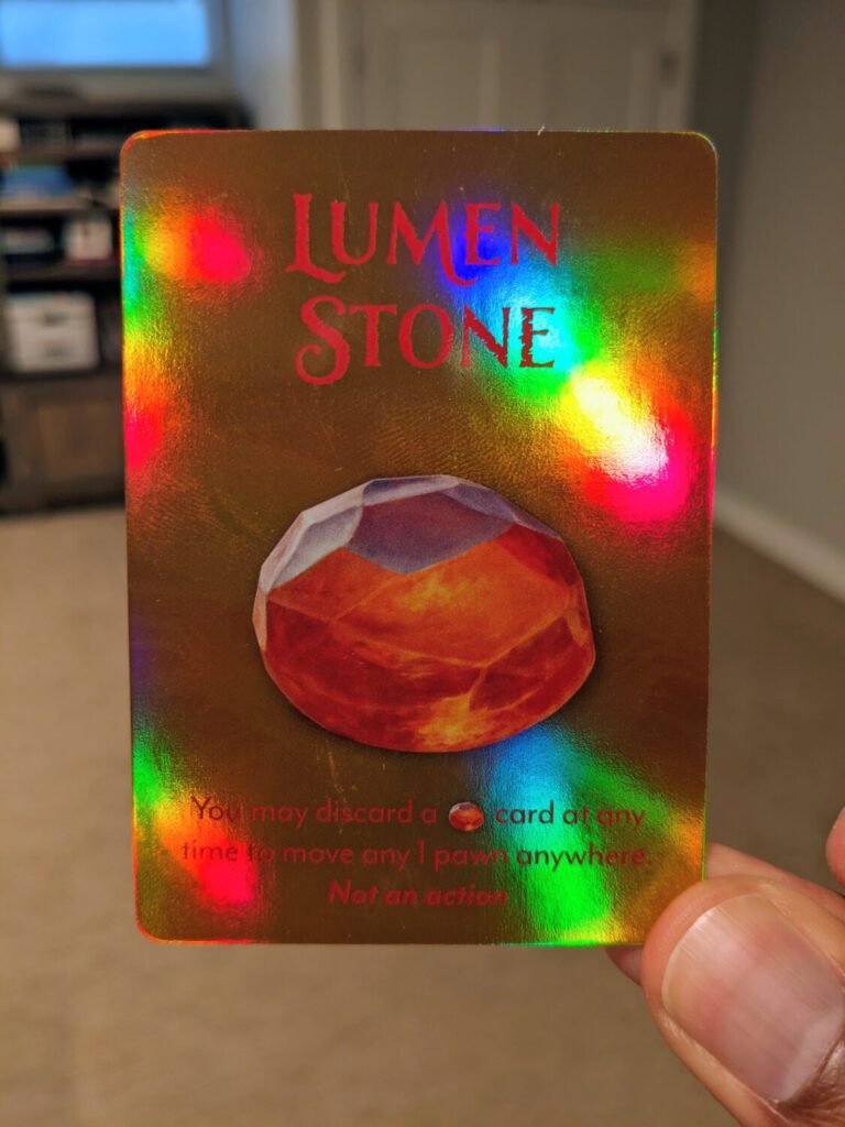 Some of the individual spell cards (think Sandbags from Forbidden Island) are interesting, and the way the draw deck shrinks was, I guess, another “hrmph” moment when my wife and I nodded that we liked something, but not quite enough to say “wow.”