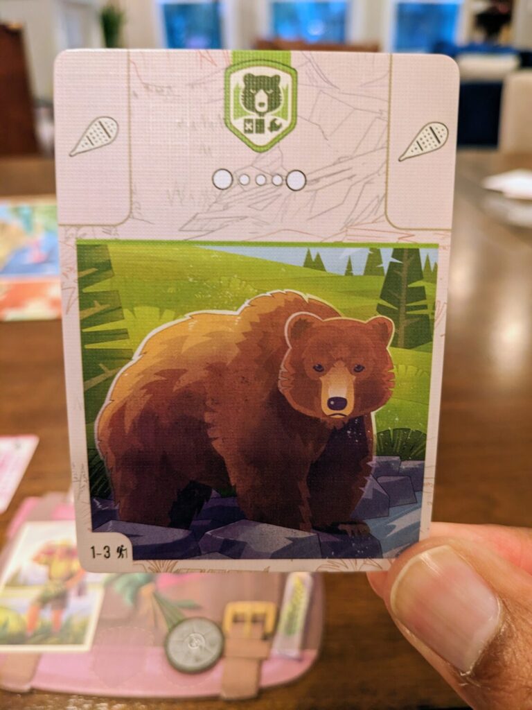 I also enjoyed the way new missions are doled out to players—someone has to move to a Ranger Station, then flip new missions from that round’s supply to unique players, one by one. Sometimes, the luck of the draw worked out well and a player was given a mission that was very close or directly at their current location, while in other cases we were hosed by bad luck. Trying to keep players in a certain region of the board to keep taking out missions in this way is a possible strategy to stay in front of the 8-ball, and it allows players to focus on giving certain kinds of Supply Cards to the right player.