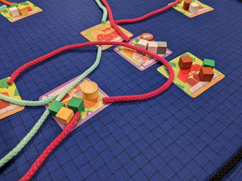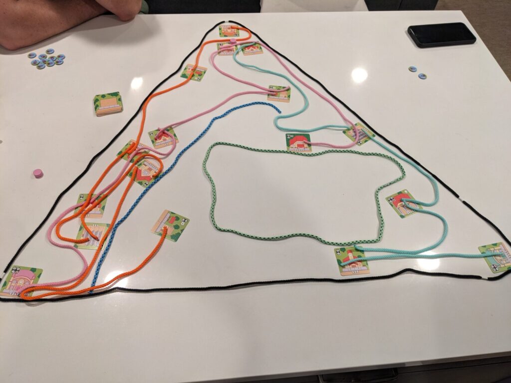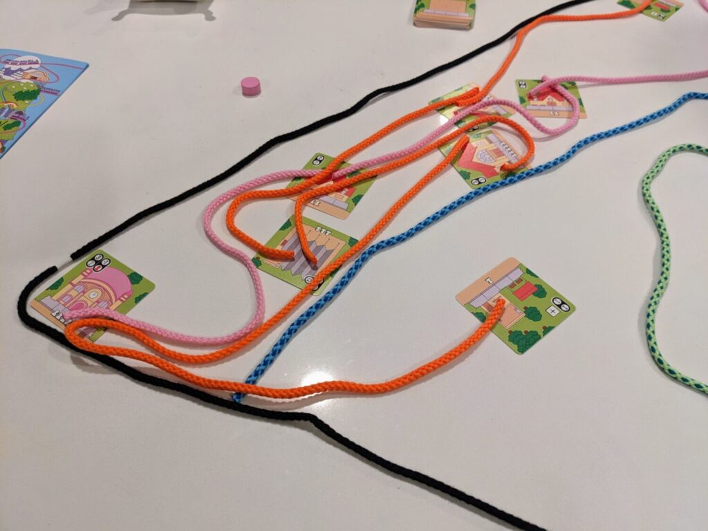String Railway: Cubed is essentially “Age of String.” Or maybe “Age of Shoelace”, as one player joked during a five-player game of String Railway: Cubed.