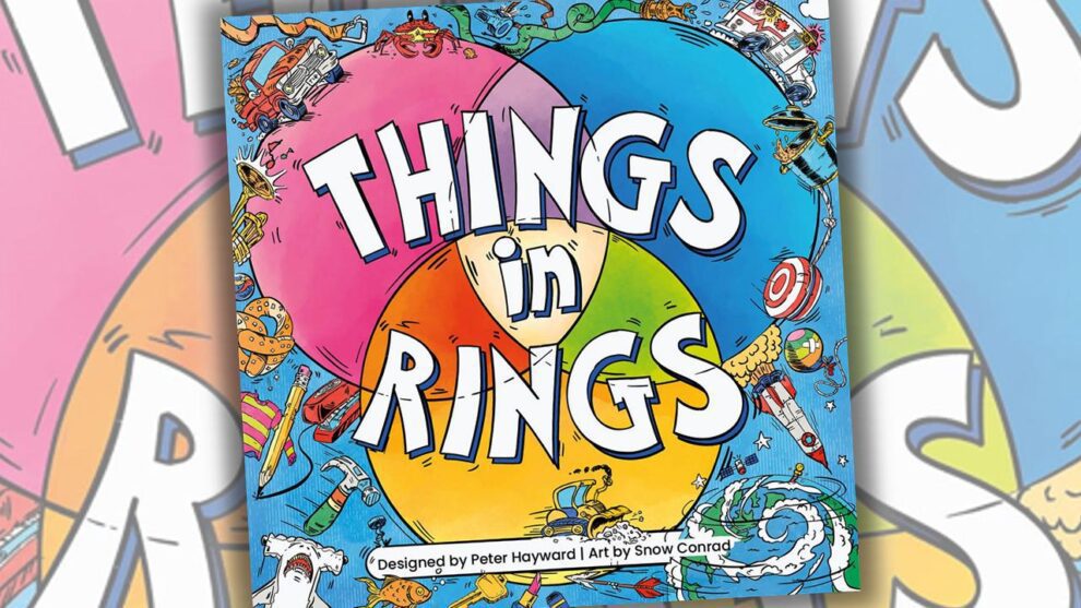 Things in Rings is a 2-6+ player party game that stretches your mind by connecting the dots in a Venn diagram. The objective is to shed your hand of five “Things” cards before other players, all at the discretion of the “knower.” The Venn diagram is comprised of three categories: Word, Context, and Attribute. One player takes on the role of the “knower,” drawing a set of three cards that match each of the categories. Only the knower knows all and judges accordingly!
