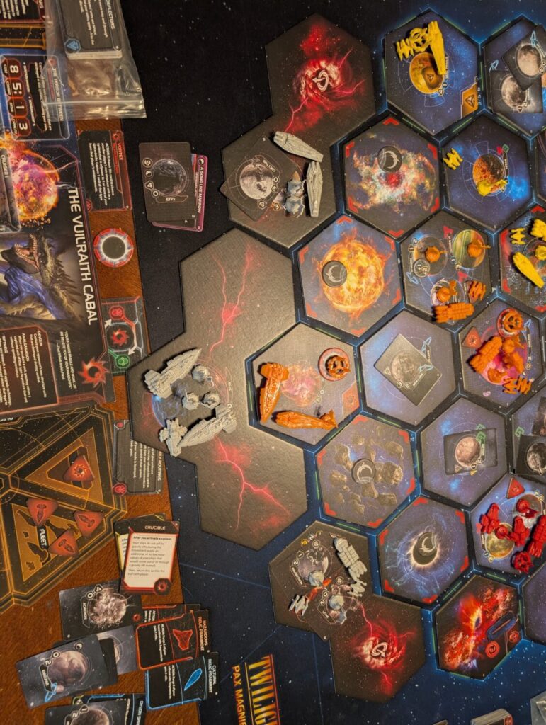I didn’t play Twilight’s Fall, and I don’t pretend to fully understand every interaction. Not because it’s poorly designed, but because it leans hard into what I consider Twilight Imperium’s biggest barrier to entry: the sheer, oppressive amount of game knowledge it expects from its players. TI4 already asks you to be at least vaguely aware of thirty factions, each with multiple abilities, unique technologies, leaders, alliances, promissory notes, and now breakthroughs. That’s hundreds of moving parts before you even start accounting for objectives, action cards, or agendas. Twilight’s Fall cranks that to maximum.