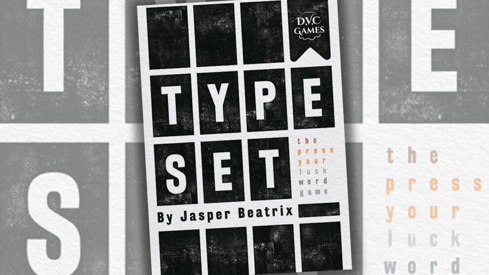 Within the world of contemporary board games, word games are plenty popular, but there aren’t many that qualify as word puzzles. It’s an important, meaningful distinction, though I’m open to this being a bug/insect situation. Word games are typically associative, about the meaning of words. Codenames, Just One, and So Clover are all word games, but none of them are word puzzles. Word puzzles play with the words themselves, the matter of words, with letters and syllables. Bananagrams and Scrabble are the most popular examples. Letter Jam is another. Typeset, from the design team at publisher D.V.C., is also very much a word puzzle.