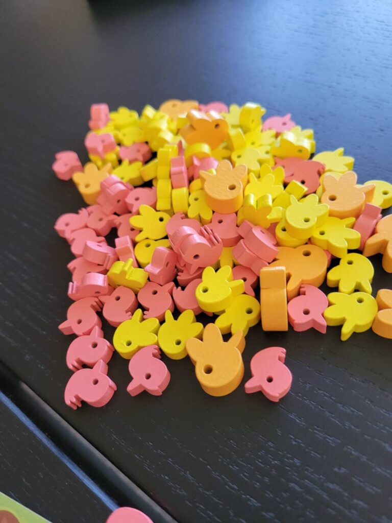 On your turn, you select a tile from a market of 3. You have to place it within your personal tile grid, and there are blissfully few rules for placement, other than preserving the overall grid-y-ness of the whole thing. There are five different terrain possibilities (ok, one of them is ponds, which aren’t technically terrains in game parlance), and you’re trying to make different configurations to score some points.