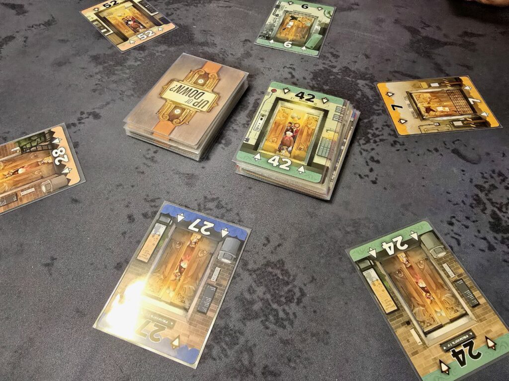 The game consists of a deck of cards numbered 1–126, with the range varying based on player count. It also includes short and long versions, by simply adding or subtracting cards depending on how much you enjoy riding elevators. A shuffled deck is split into one face-up and one facedown pile, with six random cards placed in ascending order to form the market.