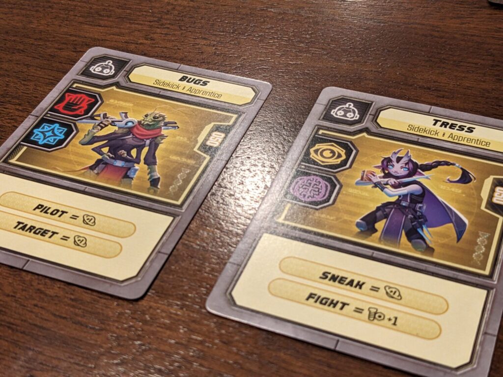I don’t mind deckbuilding mechanics in games. I DO mind that this process is now much slower than just rolling a die. (I’m also particular to just rolling a die, because, you know, dice.) Some of the cards that can be added into each deck are fun and create some interesting combos, but this mainly serves to slow an already tedious game.