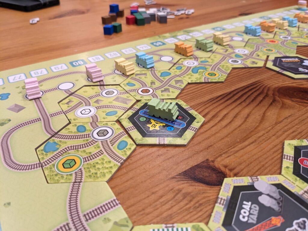 No matter where you land, Whistle Stop is a game that features trains. In our group’s vernacular, Whistle Stop is not a “train game”—there are no stock rounds, operating rounds, trains that rust, or phases where we switch from green to brown track. But it is absolutely a train game in the way that Age of Steam operates, for some of the reasons we will discuss below.